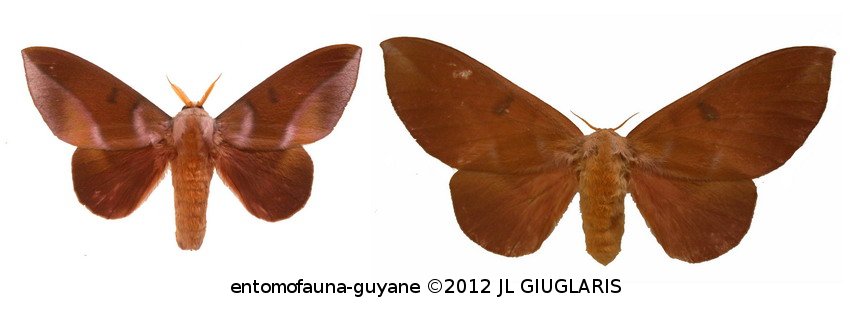 Accueil / Classification organisée et hiérarchisée. / LEPIDOPTERA Linnaeus, 1758 / SATURNIIDAE Boisduval, 1837 / CERATOCAMPINAE Harris, 1841 / Othorene purpurascens (Schaus, 1905) ♂ & ♀