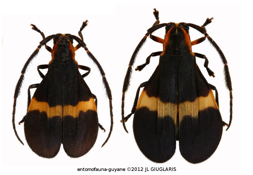 Accueil / Classification organisée et hiérarchisée. / CERAMBYCIDAE Latreille, 1802 / LAMIINAE Latreille, 1825 / HEMILOPHINI Thomson 1868 / HEMILOPHINI Thomson, 1868 / Lycidola simulatrix (Bates, 1866) ♂ & ♀