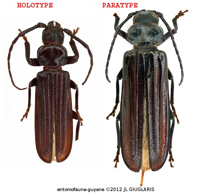 Accueil / Classification organisée et hiérarchisée. / CERAMBYCIDAE Latreille, 1802 / PRIONINAE Latreille, 1802 / CALLIPOGONINI Thomson,1861 / Chorenta toulgoeti Dalens, Touroult, Tavakilian, 2010 ♂ HOLOTYPE & PARATYPE ♀