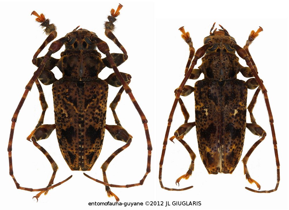 Accueil / Classification organisée et hiérarchisée. / CERAMBYCIDAE Latreille, 1802 / LAMIINAE Latreille, 1825 / ACANTHODERINI Thomson, 1860 / ACANTHODERINI Thomson, 1860 / Aegomorphus pigmentatus (Bates, 1861) ♂ & ♀