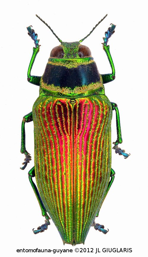 Accueil / Classification organisée et hiérarchisée. / BUPRESTIDAE Leach, 1815 / CHRYSOCHROINAE Lacordaire, 1857 / DICERCINI Gistel, 1848 / Psiloptera bicarinata (Thumberg, 1789)