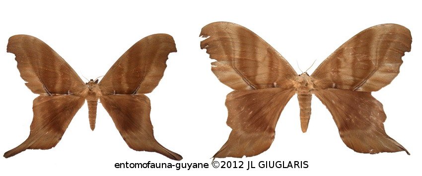 Accueil / Classification organisée et hiérarchisée. / LEPIDOPTERA Linnaeus, 1758 / SATURNIIDAE Boisduval, 1837 / ARSENURINAE Jordan, 1922 / Paradaemonia terrena (Jordan, 1922) ♂ & ♀