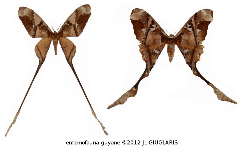 Accueil / Classification organisée et hiérarchisée. / LEPIDOPTERA Linnaeus, 1758 / SATURNIIDAE Boisduval, 1837 / ARSENURINAE Jordan, 1922 / Copiopteryx semiramis semiramis (Cramer, 1775) ♂ & ♀