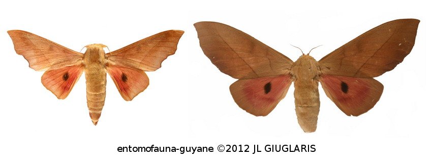 Accueil / Classification organisée et hiérarchisée. / LEPIDOPTERA Linnaeus, 1758 / SATURNIIDAE Boisduval, 1837 / CERATOCAMPINAE Harris, 1841 / Syssphinx molina (Cramer, 1780) ♂ & ♀