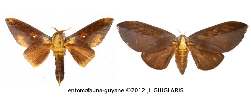 Accueil / Classification organisée et hiérarchisée. / LEPIDOPTERA Linnaeus, 1758 / SATURNIIDAE Boisduval, 1837 / CERATOCAMPINAE Harris, 1841 / Adelowalkeria eugenia (Druce, 1904) ♂ & ♀