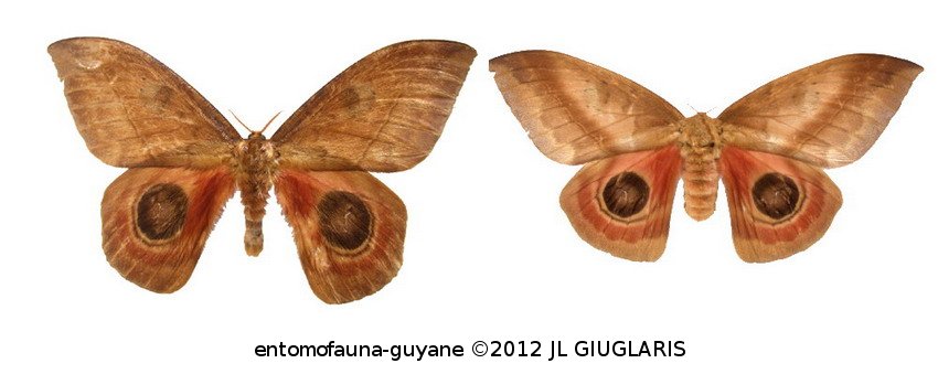 Accueil / Classification organisée et hiérarchisée. / LEPIDOPTERA Linnaeus, 1758 / SATURNIIDAE Boisduval, 1837 / HEMILEUCINAE Grote & Robinson, 1866 / Automeris janus (Cramer, 1775) ♂ & ♀