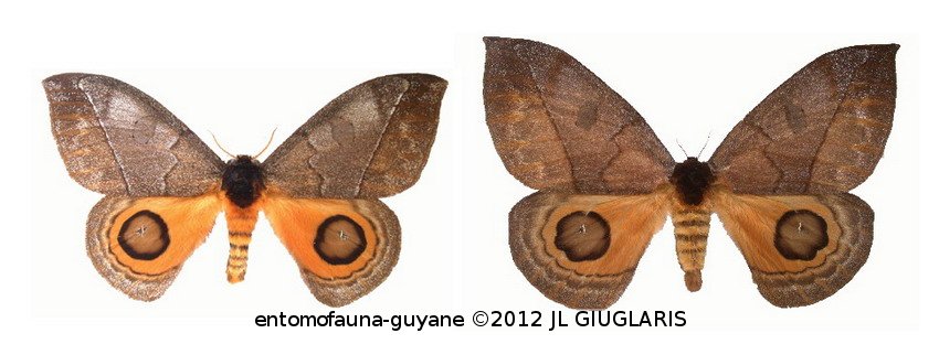 Accueil / Classification organisée et hiérarchisée. / LEPIDOPTERA Linnaeus, 1758 / SATURNIIDAE Boisduval, 1837 / HEMILEUCINAE Grote & Robinson, 1866 / Automeris watsoni Lemaire, 1966 ♂ & ♀
