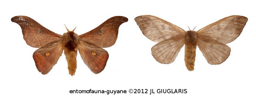 Accueil / Classification organisée et hiérarchisée. / LEPIDOPTERA Linnaeus, 1758 / SATURNIIDAE Boisduval, 1837 / HEMILEUCINAE Grote & Robinson, 1866 / Hylesia nanus (Walker, 1855) ♂ & ♀