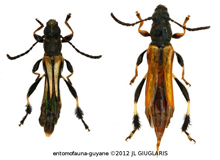 Accueil / Classification organisée et hiérarchisée. / CERAMBYCIDAE Latreille, 1802 / CERAMBYCINAE Latreille, 1802 / RHINOTRAGINI Thomson 1861 / RHINOTRAGINI Thomson, 1861 / Odontocera poecilopoda White, 1855 ♂ & ♀