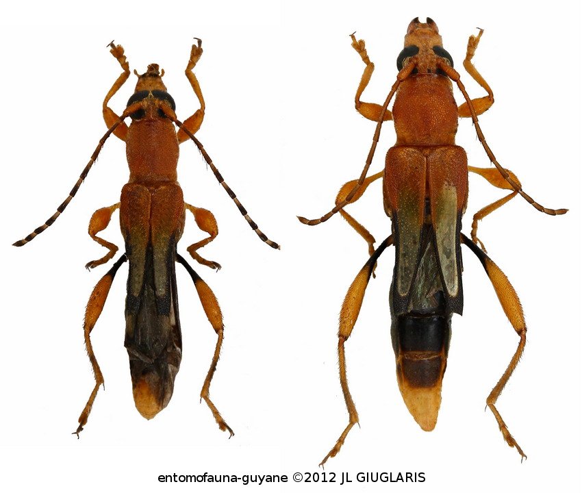Accueil / Classification organisée et hiérarchisée. / CERAMBYCIDAE Latreille, 1802 / CERAMBYCINAE Latreille, 1802 / RHINOTRAGINI Thomson 1861 / RHINOTRAGINI Thomson, 1861 / Odontocera mellea White, 1855 ♂ & ♀