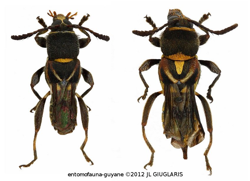 Accueil / Classification organisée et hiérarchisée. / CERAMBYCIDAE Latreille, 1802 / CERAMBYCINAE Latreille, 1802 / RHINOTRAGINI Thomson 1861 / RHINOTRAGINI Thomson, 1861 / Tomopterus aurantiacosignatus Zajciw, 1969 ♂ & ♀
