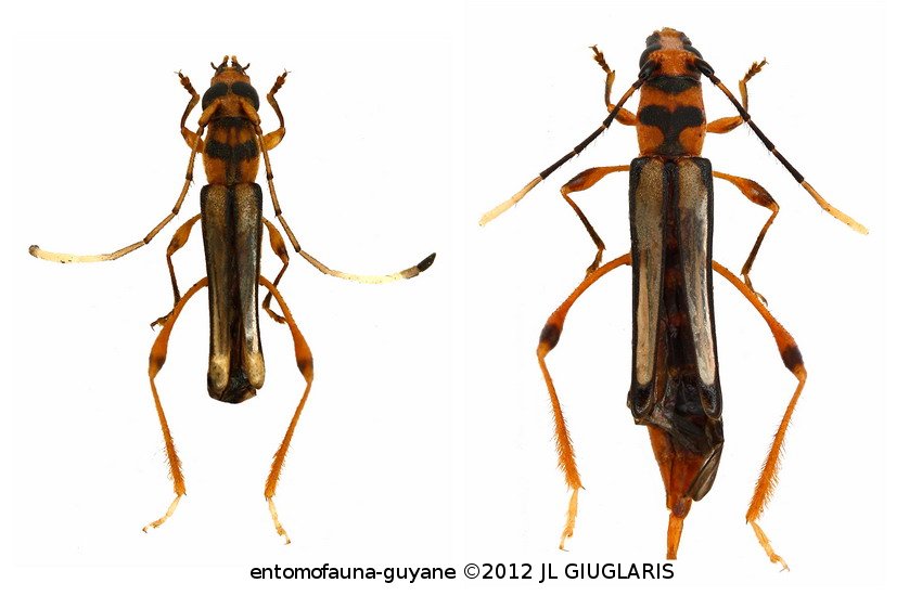 Accueil / Classification organisée et hiérarchisée. / CERAMBYCIDAE Latreille, 1802 / CERAMBYCINAE Latreille, 1802 / RHINOTRAGINI Thomson 1861 / RHINOTRAGINI Thomson, 1861 / Xenocrasis politipennis Tavakilian & Penherrera-Leiva, 2003 ♂ & ♀