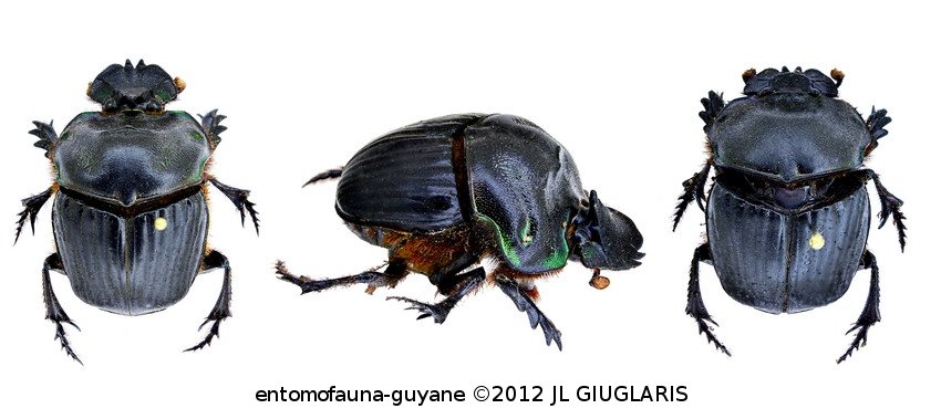 Accueil / Classification organisée et hiérarchisée. / SCARABAEOIDEA Latreille, 1802 / SCARABAEIDAE Latreille, 1802 / SCARABAEINAE Latreille, 1802 / PHANAENINI MacLeay, 1819 / Coprophanaeus (Coprophanaeus) jasius (Olivier, 1789) ♂ & ♀