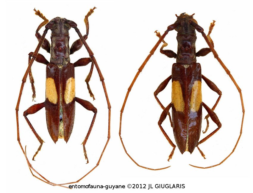Accueil / Classification organisée et hiérarchisée. / CERAMBYCIDAE Latreille, 1802 / CERAMBYCINAE Latreille, 1802 / TROPIDINI Martins and Galileo, 2007 / TROPIDINA Galileo & Martins, 2010 / Gnomibidion fulvipes (Thomson, 1865) ♂ & ♀