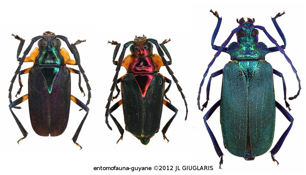 Accueil / Classification organisée et hiérarchisée. / CERAMBYCIDAE Latreille, 1802 / PRIONINAE Latreille, 1802 / MALLASPINI Thomson, 1861 / Esmeralda coerulea (Schoenherr, 1817) ♂ (var.) & ♀