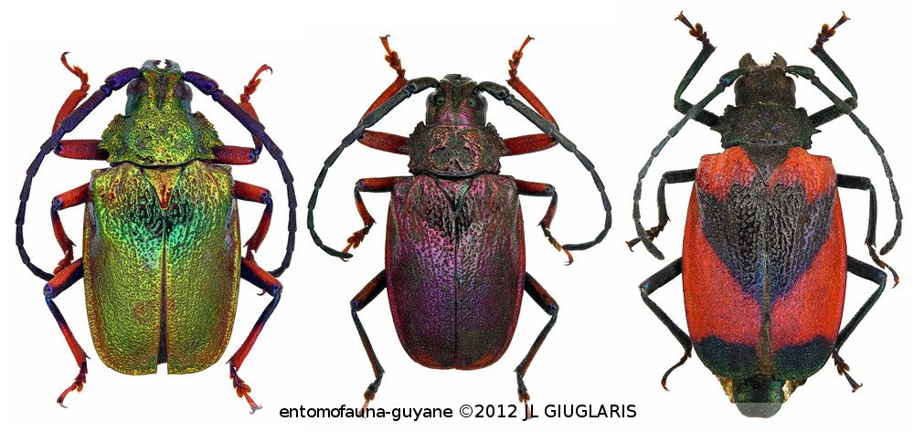 Accueil / Classification organisée et hiérarchisée. / CERAMBYCIDAE Latreille, 1802 / PRIONINAE Latreille, 1802 / MALLASPINI Thomson, 1861 / Hileolaspis auratus (Linnaeus, 1758) ♂ (var.) & ♀