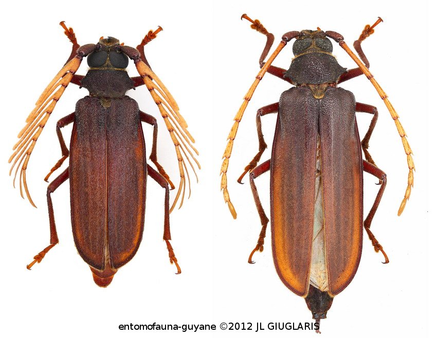 Accueil / Classification organisée et hiérarchisée. / CERAMBYCIDAE Latreille, 1802 / PRIONINAE Latreille, 1802 / MEROSCELISINI Thomson, 1861 / Hyleoza confusa Tavakilian & Galileo, 1991 ♂ & ♀