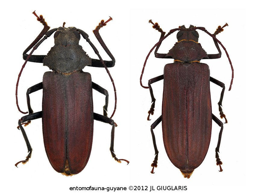 Accueil / Classification organisée et hiérarchisée. / CERAMBYCIDAE Latreille, 1802 / PRIONINAE Latreille, 1802 / MALLODONINI Thomson, 1861 / Protorma costifer (Thomson, 1877) ♂ & ♀