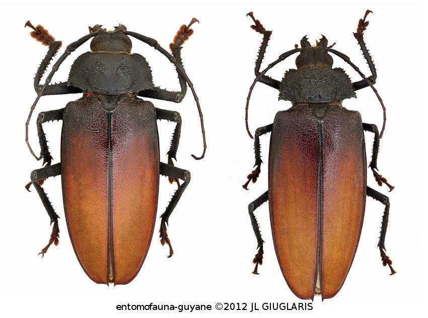 Accueil / Classification organisée et hiérarchisée. / CERAMBYCIDAE Latreille, 1802 / PRIONINAE Latreille, 1802 / MACROTOMINI Thomson, 1861 / BASITOXINA Lameere, 1912 / Ialyssus tuberculatus (Olivier, 1795) ♂ & ♀