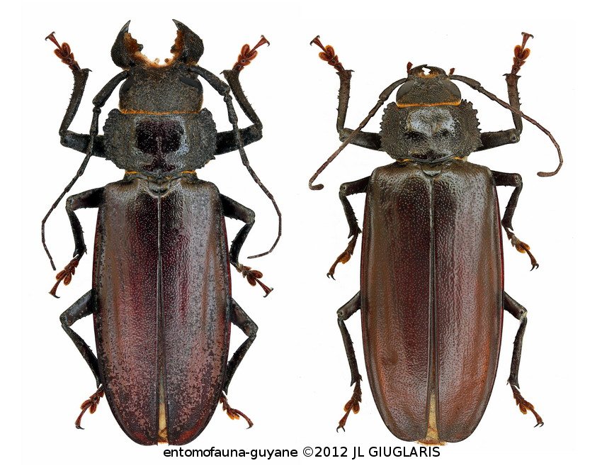 Accueil / Classification organisée et hiérarchisée. / CERAMBYCIDAE Latreille, 1802 / PRIONINAE Latreille, 1802 / MALLODONINI Thomson, 1861 / Physopleurus ubirajarai Delahaye & Tavakilian, 2015 ♂ & ♀
