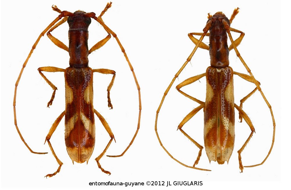Accueil / Classification organisée et hiérarchisée. / CERAMBYCIDAE Latreille, 1802 / CERAMBYCINAE Latreille, 1802 / HEXOPLONINI Galileo & Martins, 2010 / HEXOPLONINI Galileo & Martins, 2010. / Glyptoscapus pallidulus (White, 1855) ♂ & ♀