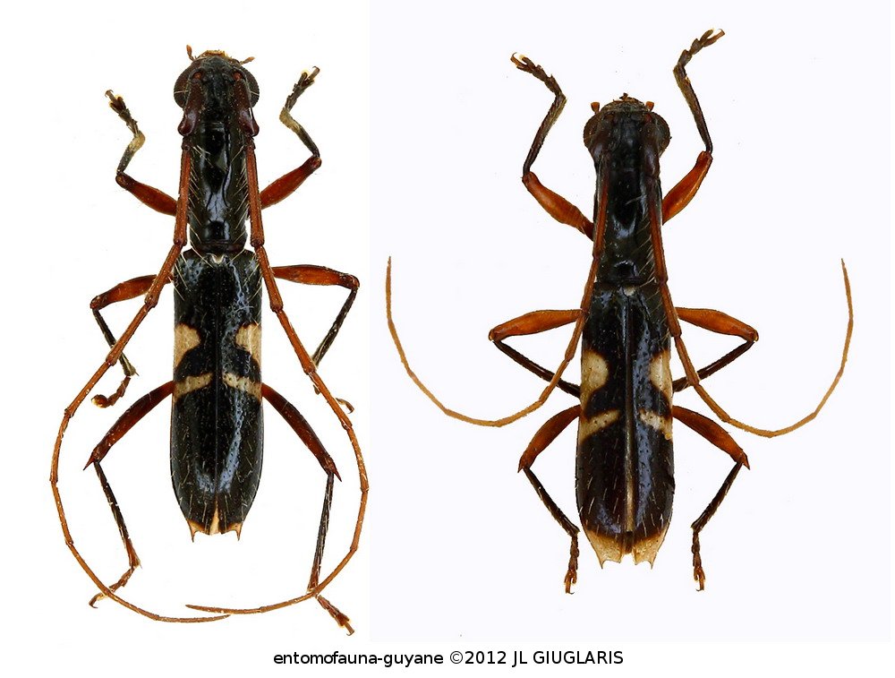 Accueil / Classification organisée et hiérarchisée. / CERAMBYCIDAE Latreille, 1802 / CERAMBYCINAE Latreille, 1802 / HEXOPLONINI Galileo & Martins, 2010 / HEXOPLONINI Galileo & Martins, 2010. / Gnomidolon picipes Bates, 1870 ♂ & ♀