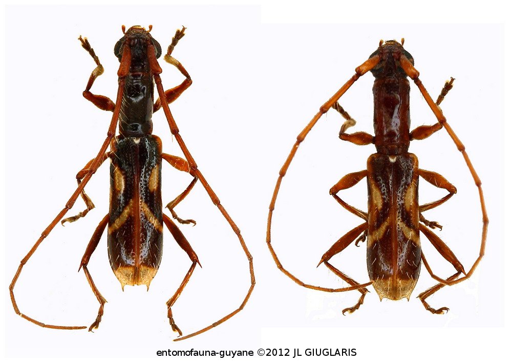 Accueil / Classification organisée et hiérarchisée. / CERAMBYCIDAE Latreille, 1802 / CERAMBYCINAE Latreille, 1802 / HEXOPLONINI Galileo & Martins, 2010 / HEXOPLONINI Galileo & Martins, 2010. / Gnomidolon musivum (Erichson, 1847) ♂ & ♀