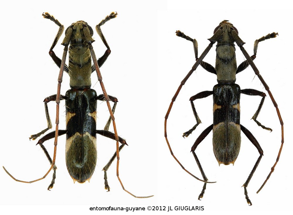 Accueil / Classification organisée et hiérarchisée. / CERAMBYCIDAE Latreille, 1802 / CERAMBYCINAE Latreille, 1802 / HEXOPLONINI Galileo & Martins, 2010 / HEXOPLONINI Galileo & Martins, 2010. / Hexocycnidolon unoculum (Bates, 1870) ♂ & ♀