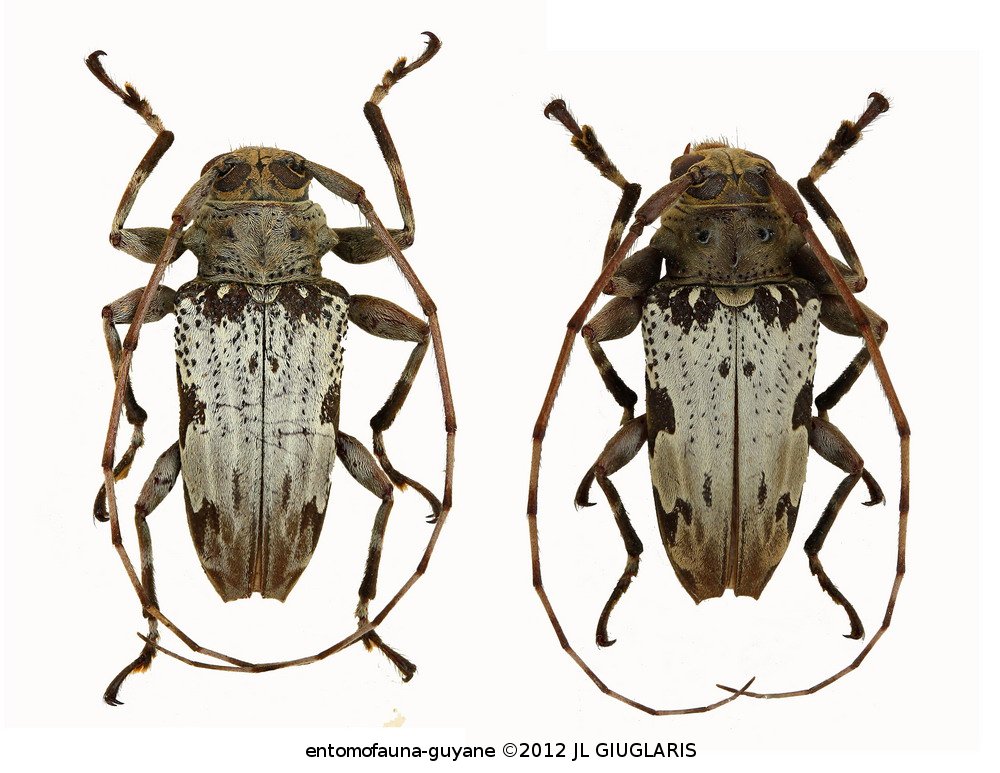 Accueil / Classification organisée et hiérarchisée. / CERAMBYCIDAE Latreille, 1802 / LAMIINAE Latreille, 1825 / ACROCININI Swainson, 1840 / Oreodera albicans Monné & Fragoso, 1988 ♂ & ♀