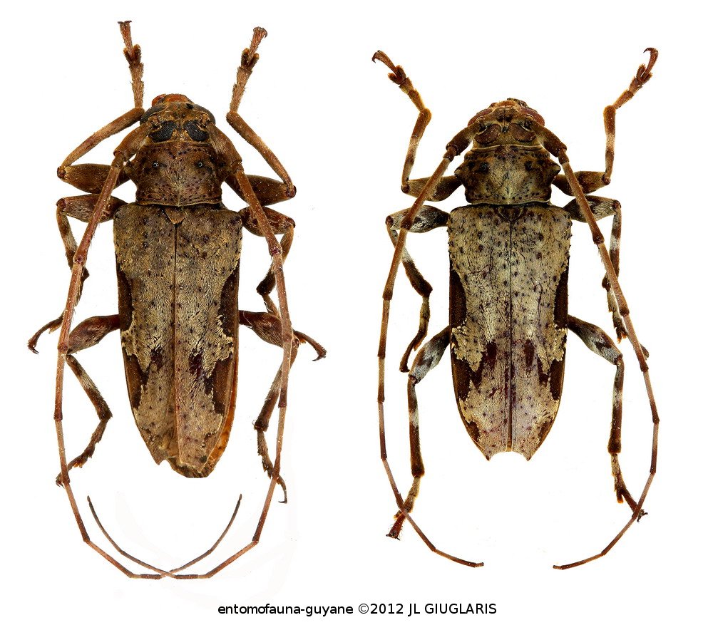 Accueil / Classification organisée et hiérarchisée. / CERAMBYCIDAE Latreille, 1802 / LAMIINAE Latreille, 1825 / ACROCININI Swainson, 1840 / Oreodera bituberculata Bates, 1861 ♂ & ♀