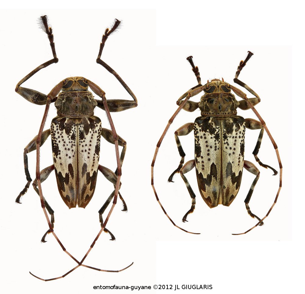Accueil / Classification organisée et hiérarchisée. / CERAMBYCIDAE Latreille, 1802 / LAMIINAE Latreille, 1825 / ACROCININI Swainson, 1840 / Oreodera basiradiata Tippemann, 1960 ♂ & ♀