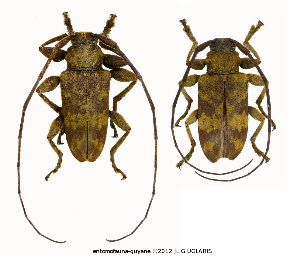 Accueil / Classification organisée et hiérarchisée. / CERAMBYCIDAE Latreille, 1802 / LAMIINAE Latreille, 1825 / ACROCININI Swainson, 1840 / Oreodera olivosimplex Neouze & Tavakilian, 2010 ♂ & ♀