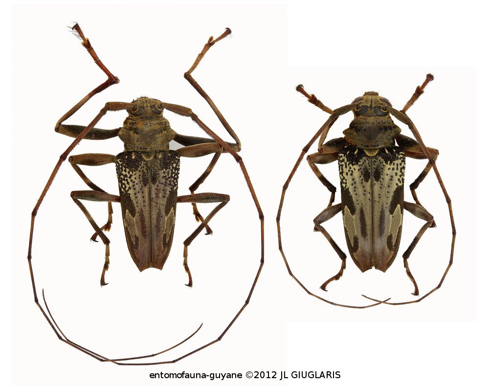 Accueil / Classification organisée et hiérarchisée. / CERAMBYCIDAE Latreille, 1802 / LAMIINAE Latreille, 1825 / ACROCININI Swainson, 1840 / Oreodera neglecta Melzer, 1932 ♂ & ♀