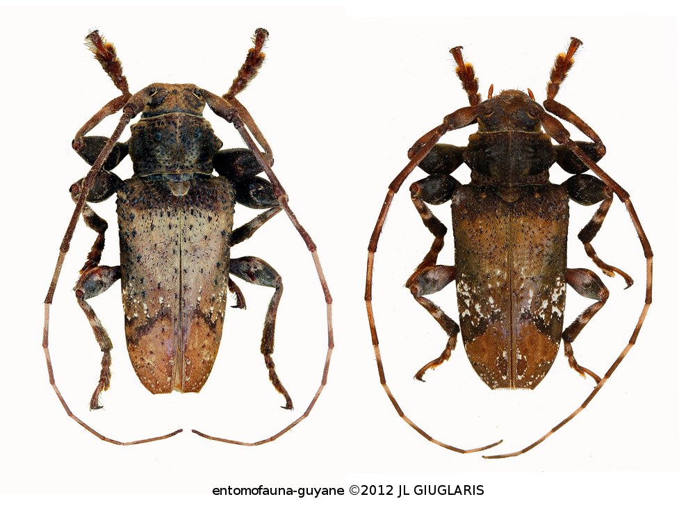 Accueil / Classification organisée et hiérarchisée. / CERAMBYCIDAE Latreille, 1802 / LAMIINAE Latreille, 1825 / ACROCININI Swainson, 1840 / Oreodera sororcula Martins & Monné, 1993 ♂ & ♀