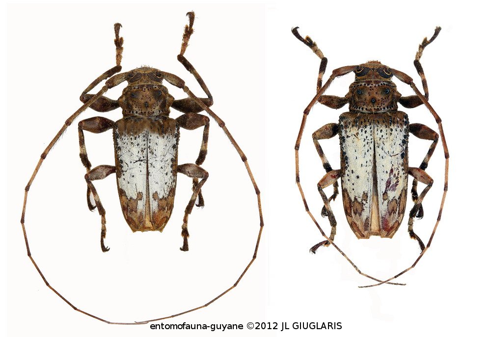 Accueil / Classification organisée et hiérarchisée. / CERAMBYCIDAE Latreille, 1802 / LAMIINAE Latreille, 1825 / ACROCININI Swainson, 1840 / Oreodera tuberosa Monné & Fragoso, 1988 ♂ & ♀