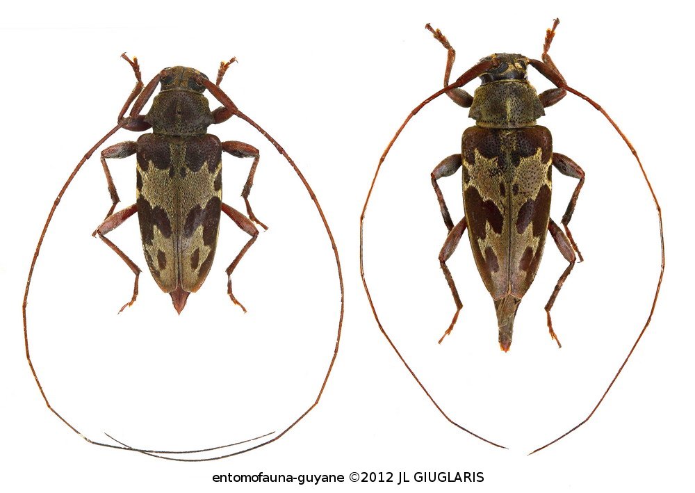 Accueil / Classification organisée et hiérarchisée. / CERAMBYCIDAE Latreille, 1802 / LAMIINAE Latreille, 1825 / ACANTHOCININI Blanchard, 1845 / ACANTHOCININI Blanchard, 1845 / Eucharitolus pulcher Bates, 1885 ♂ & ♀
