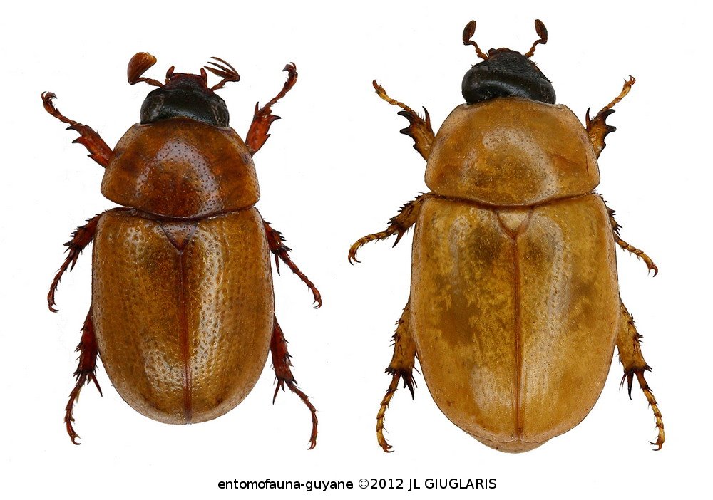 Accueil / Classification organisée et hiérarchisée. / SCARABAEOIDEA Latreille, 1802 / SCARABAEIDAE Latreille, 1802 / DYNASTINAE MacLeay, 1819 / CYCLOCEPHALINI Laporte, 1840 / Cyclocephala testacea Burmeister, 1847 ♂ & ♀