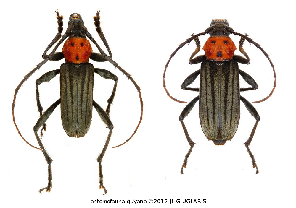 Accueil / Classification organisée et hiérarchisée. / CERAMBYCIDAE Latreille, 1802 / CERAMBYCINAE Latreille, 1802 / DICHOPHYIINI Gistel, 1848 / DICHOPHYIINI Lacordaire, 1869 / Homogenes rubrogaster Napp & Dos Santos, 1996 ♂ & ♀