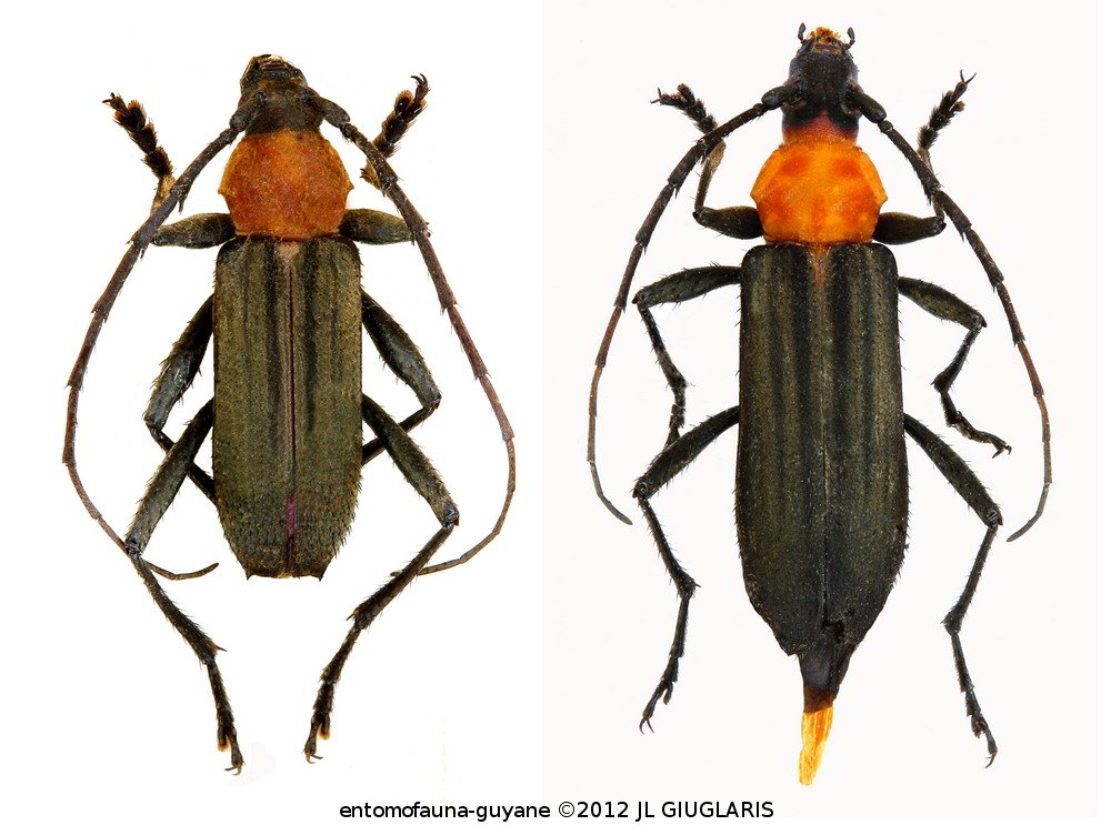 Accueil / Classification organisée et hiérarchisée. / CERAMBYCIDAE Latreille, 1802 / CERAMBYCINAE Latreille, 1802 / DICHOPHYIINI Gistel, 1848 / DICHOPHYIINI Lacordaire, 1869 / Homogenes leprieurii (Buquet in Guérin-Méneville, 1844) ♂ & ♀