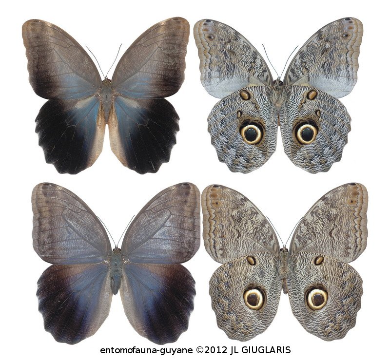 Accueil / Classification organisée et hiérarchisée. / LEPIDOPTERA Linnaeus, 1758 / NYMPHALIDAE Swainson, 1927 / MORPHINAE Newman, 1834 / BRASSOLINI Boisduval, 1836 / Caligo eurilochus eurilochus (Cramer, 1775) ♂ & ♀