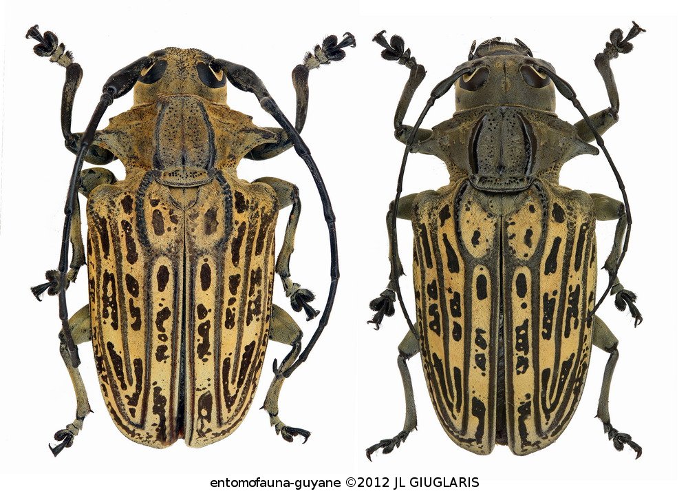 Accueil / Classification organisée et hiérarchisée. / CERAMBYCIDAE Latreille, 1802 / LAMIINAE Latreille, 1825 / ANISOCERINI Thomson, 1860 / Platysternus hebraeus (Fabricius, 1781) ♂ & ♀
