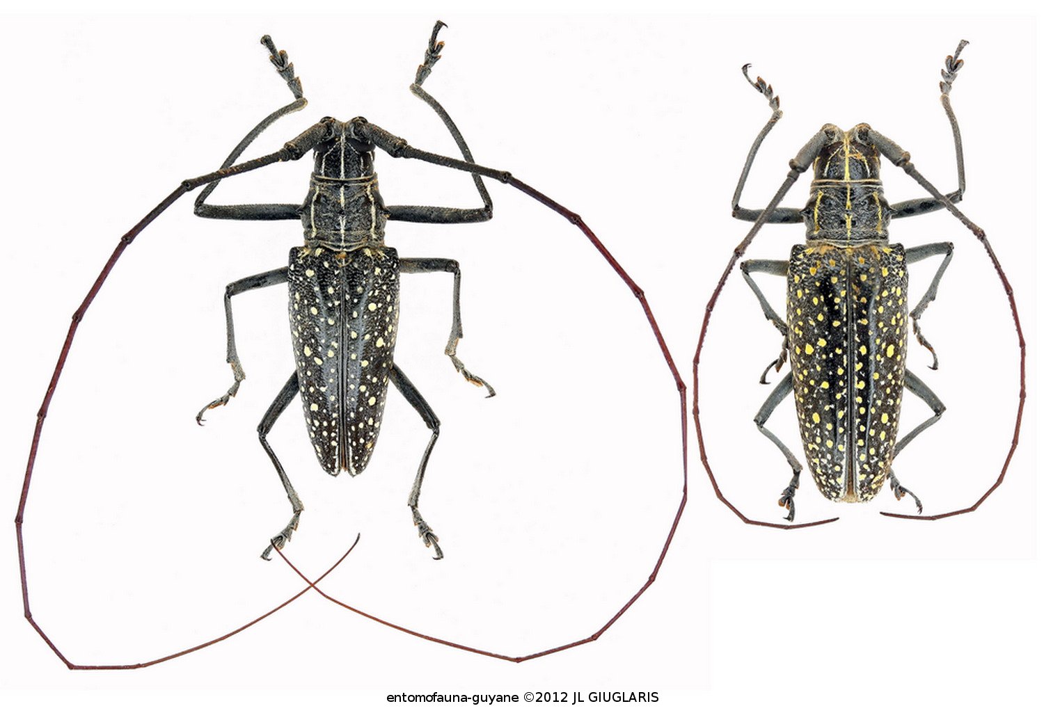 Accueil / Classification organisée et hiérarchisée. / CERAMBYCIDAE Latreille, 1802 / LAMIINAE Latreille, 1825 / LAMIINI Latreille, 1825 / Taeniotes pulverulentus Olivier 1790 ♂ & ♀