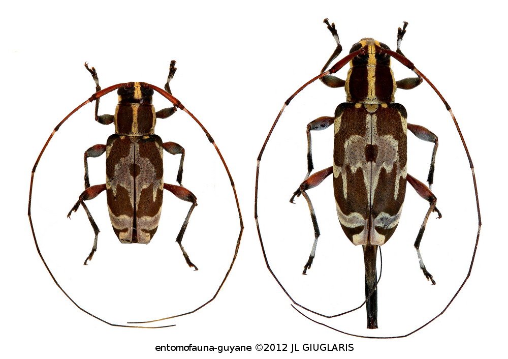 Accueil / Classification organisée et hiérarchisée. / CERAMBYCIDAE Latreille, 1802 / LAMIINAE Latreille, 1825 / ACANTHOCININI Blanchard, 1845 / ACANTHOCININI Blanchard, 1845 / Toronaeus figuratus Bates, 1864 ♂ & ♀
