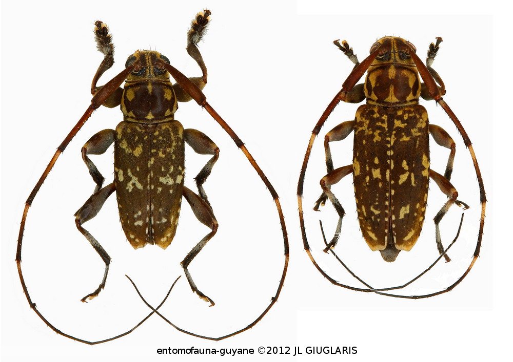 Accueil / Classification organisée et hiérarchisée. / CERAMBYCIDAE Latreille, 1802 / LAMIINAE Latreille, 1825 / ACANTHOCININI Blanchard, 1845 / ACANTHOCININI Blanchard, 1845 / Palame vitticolle (Bates, 1864) ♂ & ♀