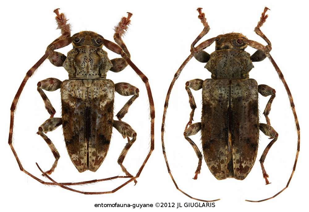Accueil / Classification organisée et hiérarchisée. / CERAMBYCIDAE Latreille, 1802 / LAMIINAE Latreille, 1825 / ACANTHODERINI Thomson, 1860 / ACANTHODERINI Thomson, 1860 / Penaherreraus sarryi (Tavakilian & Penaherrera-Leiva, 2003) ♂ & ♀