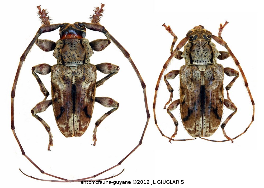 Accueil / Classification organisée et hiérarchisée. / CERAMBYCIDAE Latreille, 1802 / LAMIINAE Latreille, 1825 / ACANTHODERINI Thomson, 1860 / ACANTHODERINI Thomson, 1860 / Penaherreraus guianensis (Tavakilian & Penaherrera-Leiva, 2003) ♂ & ♀