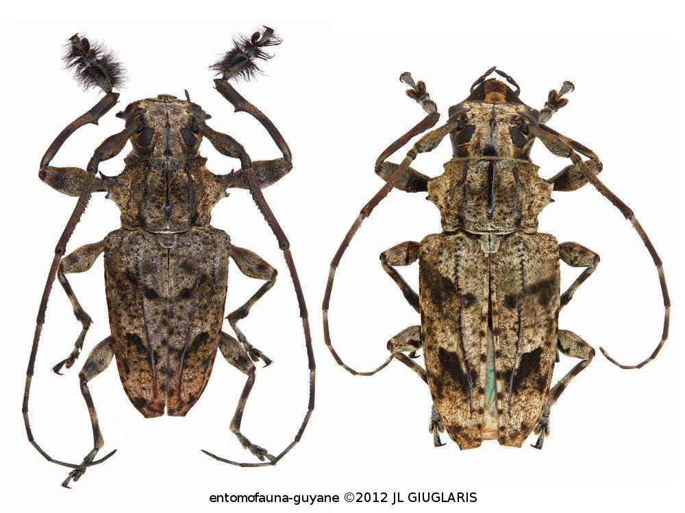Accueil / Classification organisée et hiérarchisée. / CERAMBYCIDAE Latreille, 1802 / LAMIINAE Latreille, 1825 / ACANTHODERINI Thomson, 1860 / ACANTHODERINI Thomson, 1860 / Steirastoma genisspina Schwarzer, 1923 ♂ & ♀