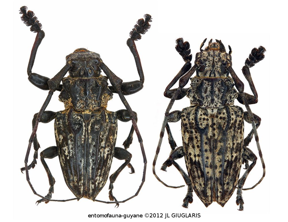 Accueil / Classification organisée et hiérarchisée. / CERAMBYCIDAE Latreille, 1802 / LAMIINAE Latreille, 1825 / ACANTHODERINI Thomson, 1860 / ACANTHODERINI Thomson, 1860 / Steirastoma breve (Sulzer, 1776) ♂ & ♀