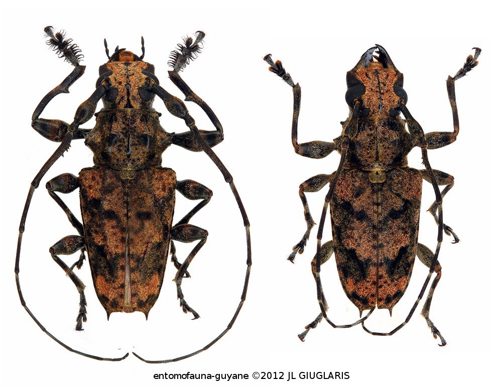 Accueil / Classification organisée et hiérarchisée. / CERAMBYCIDAE Latreille, 1802 / LAMIINAE Latreille, 1825 / ACANTHODERINI Thomson, 1860 / ACANTHODERINI Thomson, 1860 / Steirastoma melanogenys White, 1855 ♂ & ♀