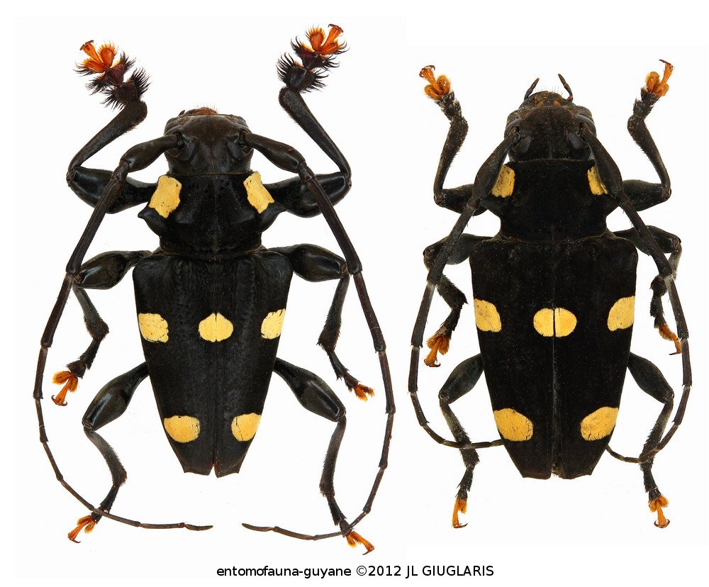 Accueil / Classification organisée et hiérarchisée. / CERAMBYCIDAE Latreille, 1802 / LAMIINAE Latreille, 1825 / ACANTHODERINI Thomson, 1860 / ACANTHODERINI Thomson, 1860 / Acanthoderes septemmaculata Buquet, 1859 ♂ & ♀